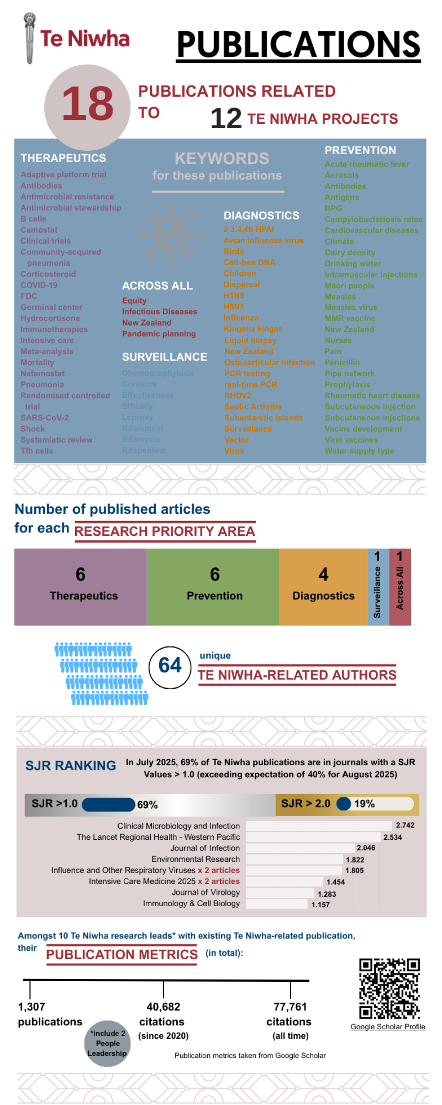 The infographic below focuses on publications to date that are connected to research funded by Te Niwha.